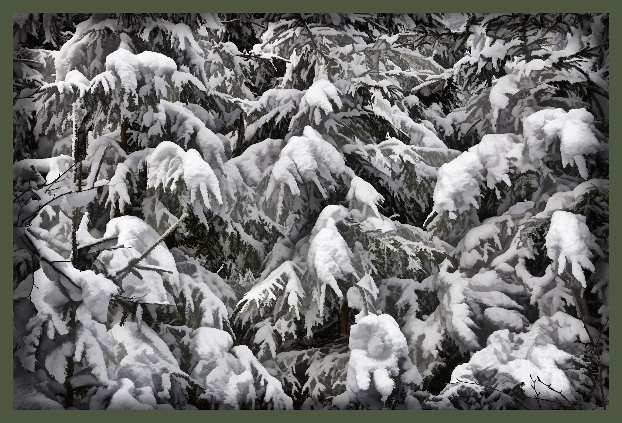 Pferdeschlitten im tief verschneiten Sulzer Wald auf dem Lindenberg.