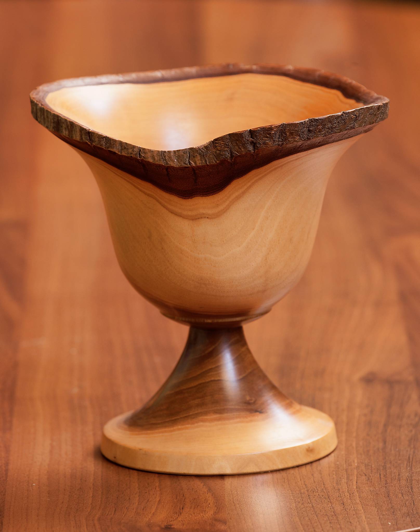 Beat Haefliger, Schreiner und seit 40 Jahren begeisterter Drechsler. Er produziert an der Drechselbank kunstvolle Einzelstuecke wie Schalen, Teller, Vasen, Pfeffermuehlen, Spielwaren, Schreibstifte und allerhand Gebrauchsgegenstaende.