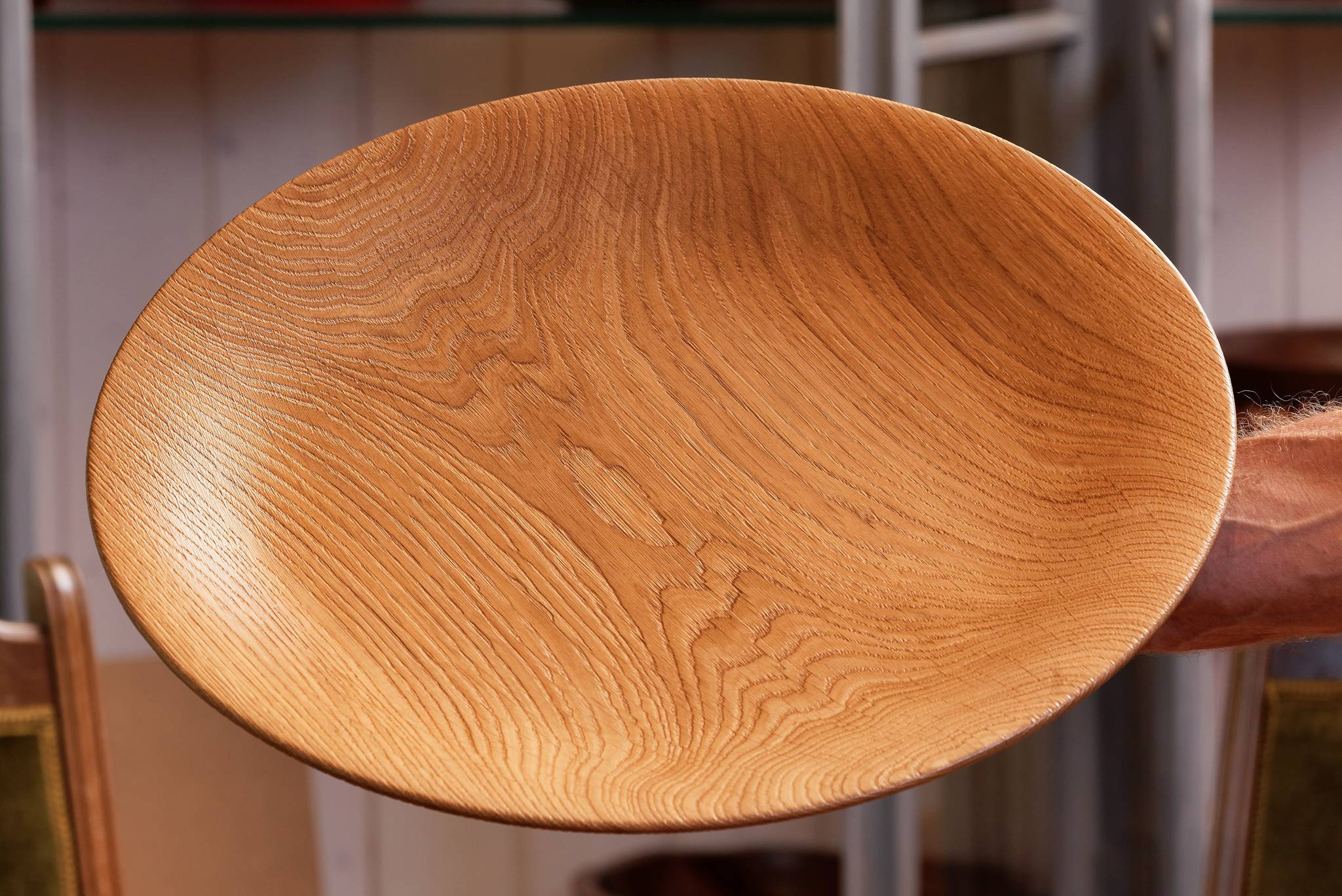 Wunderschön verästelte, filigrane Schale aus gebürstetem Eichenholz