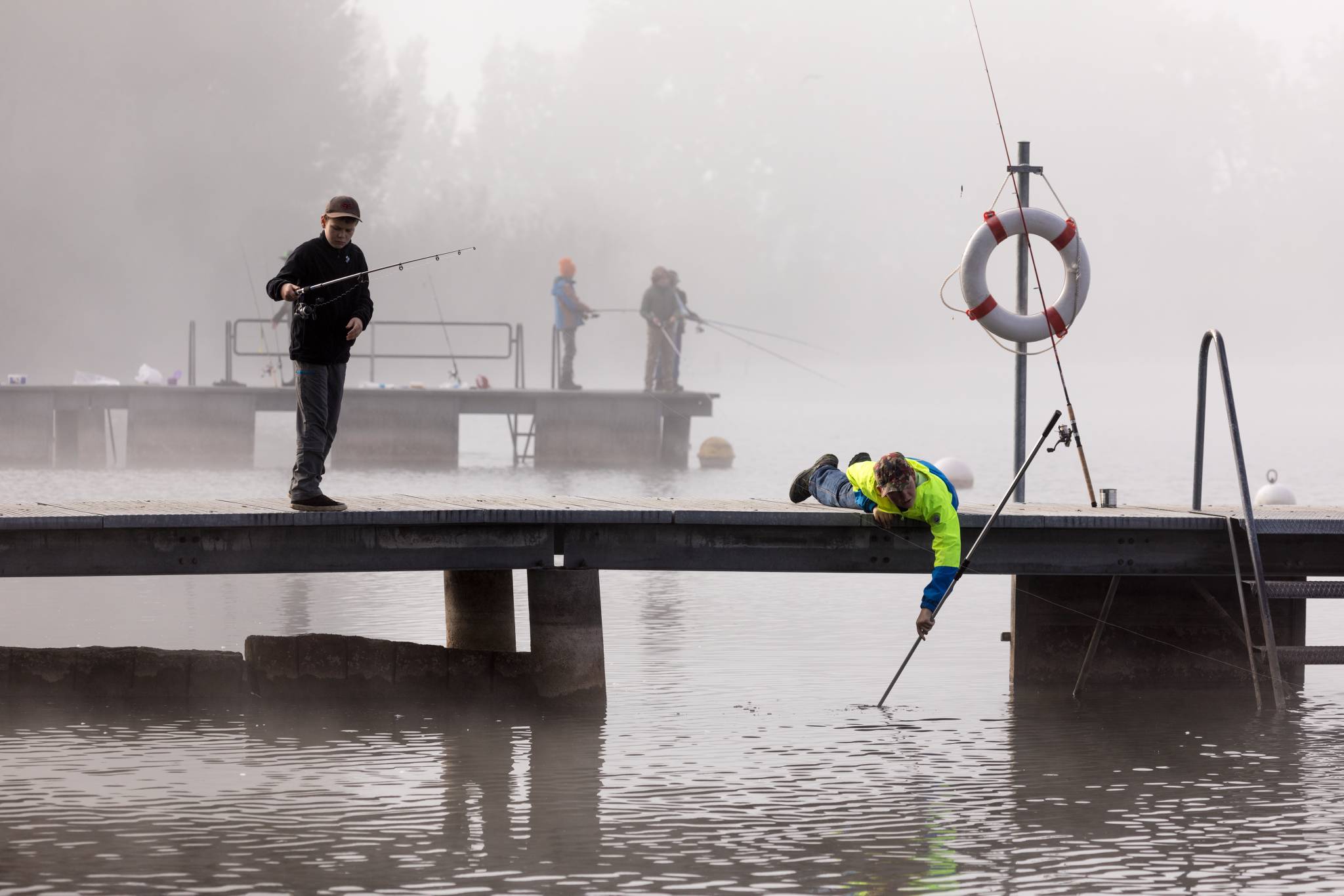 Fischem mit totalem Körpereinsatz...