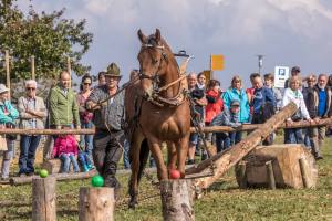 Impressionen Holzrueckewettkampf auf dem Horben bei Beinwil/Freiamt. Der Wettkampf ist der eigentliche Holzruecke-Arbeit im Wald nachempfungen. Neben Freibergern und Warmbluetern nehmen auch Ponys und einige Kaltblutpferde teil.