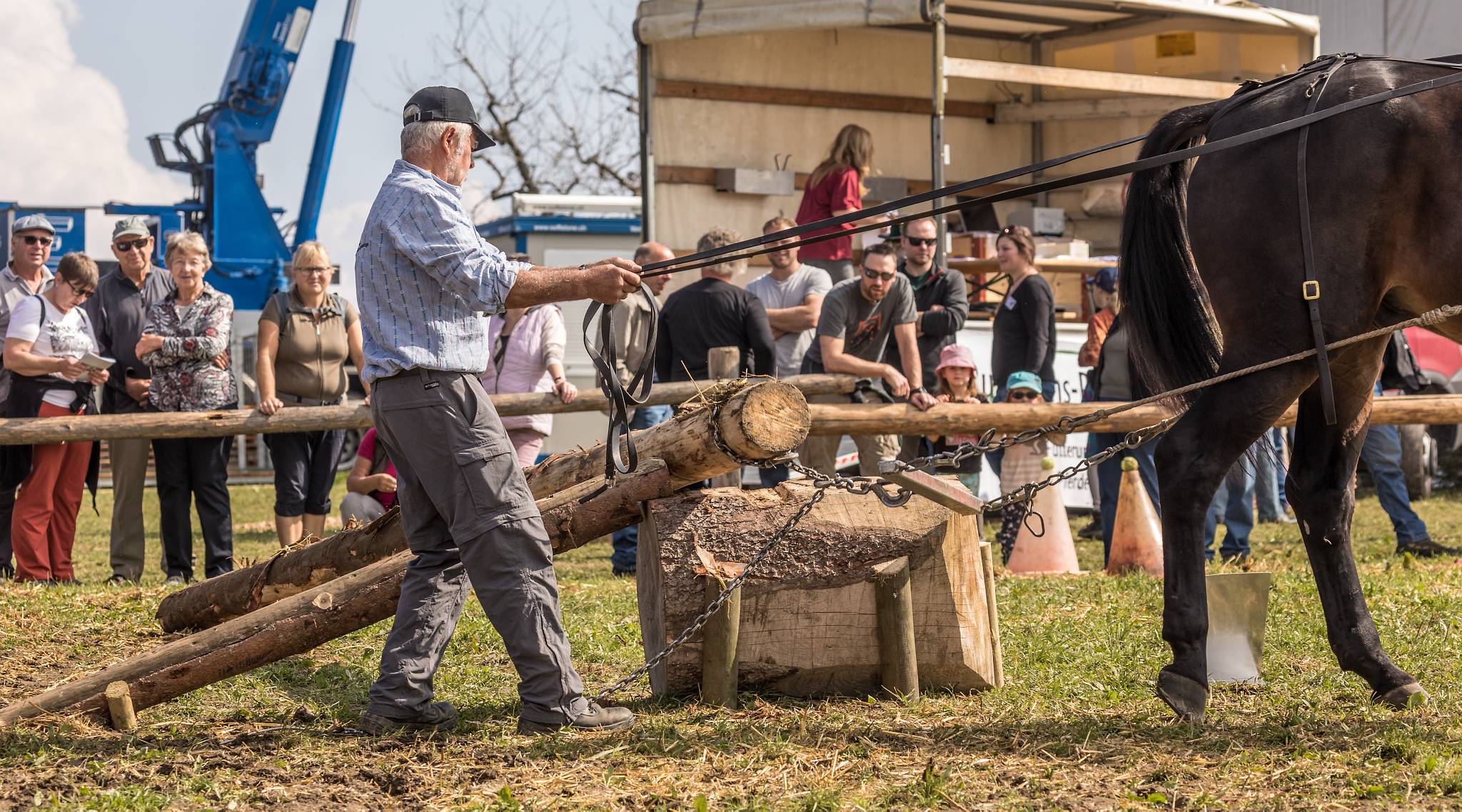 Impressionen Holzrueckewettkampf auf dem Horben bei Beinwil/Freiamt. Der Wettkampf ist der eigentliche Holzruecke-Arbeit im Wald nachempfungen. Neben Freibergern und Warmbluetern nehmen auch Ponys und einige Kaltblutpferde teil.