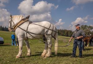 Impressionen Holzrueckewettkampf auf dem Horben bei Beinwil/Freiamt. Der Wettkampf ist der eigentliche Holzruecke-Arbeit im Wald nachempfungen. Neben Freibergern und Warmbluetern nehmen auch Ponys und einige Kaltblutpferde teil.