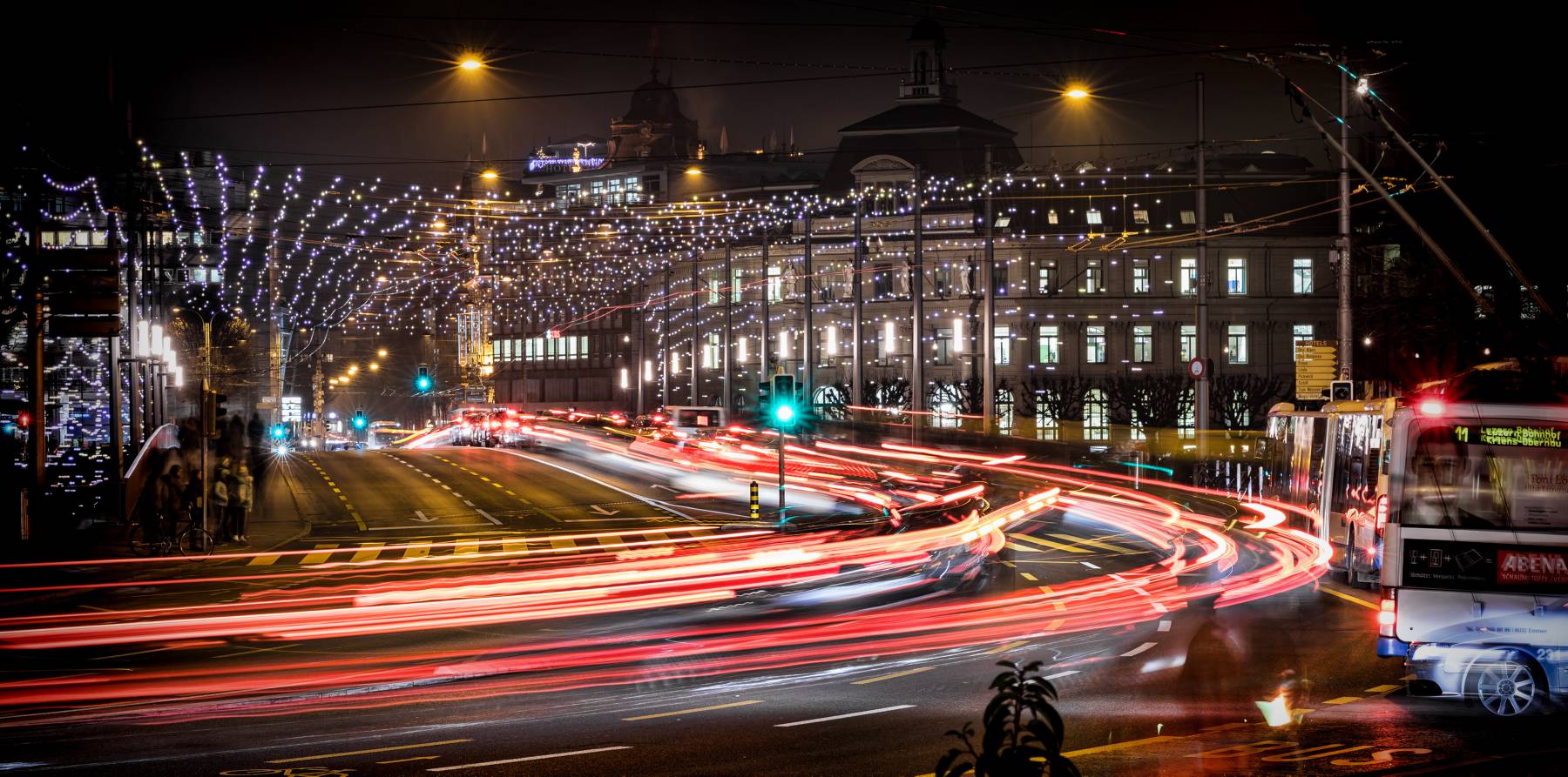 Rushhour auf der weihnächtlich beleuchteten Seebrücke