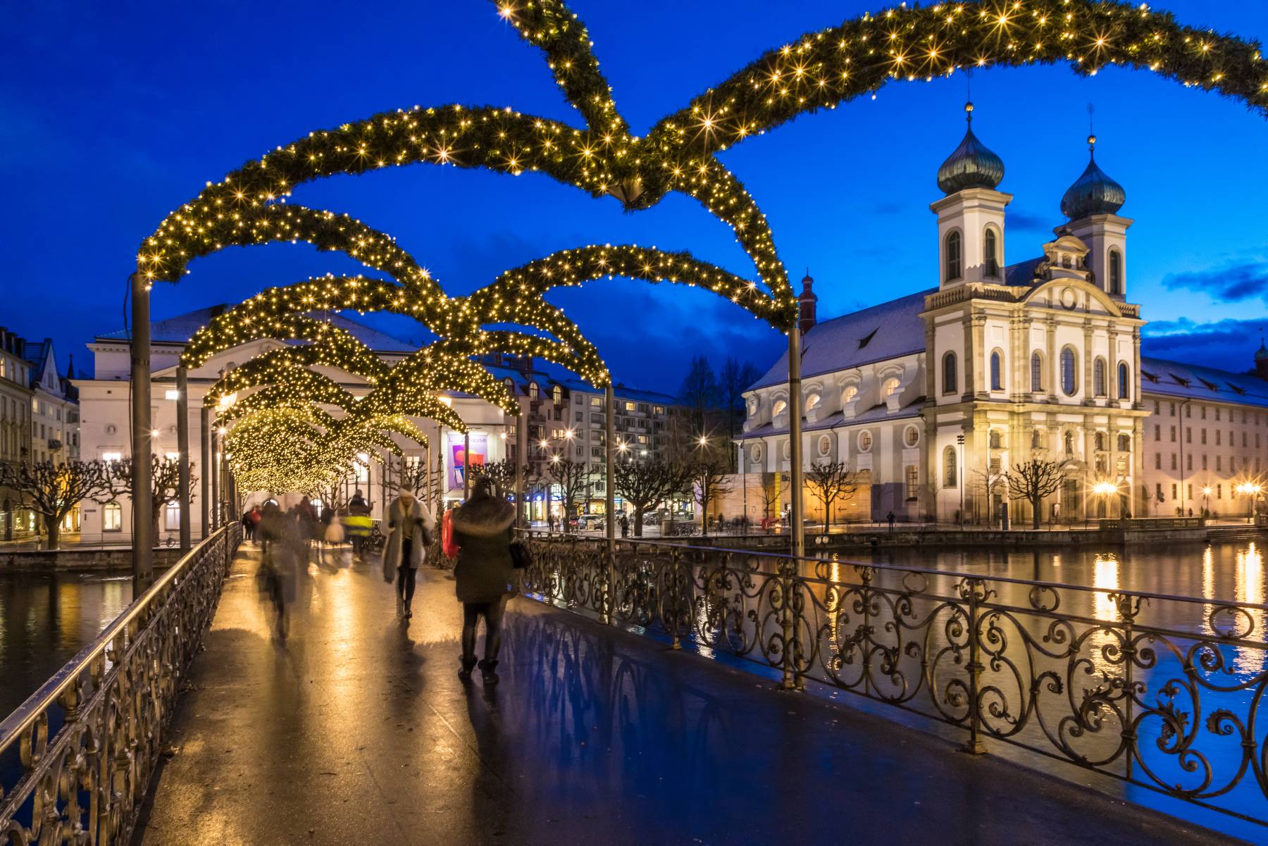 Impressionen Weihnachtsbeleuchtungen in der Luzerner Altstadt, Beleuchtung Rathausbruecke, Unter der Egg und Seebruecke Luzern.