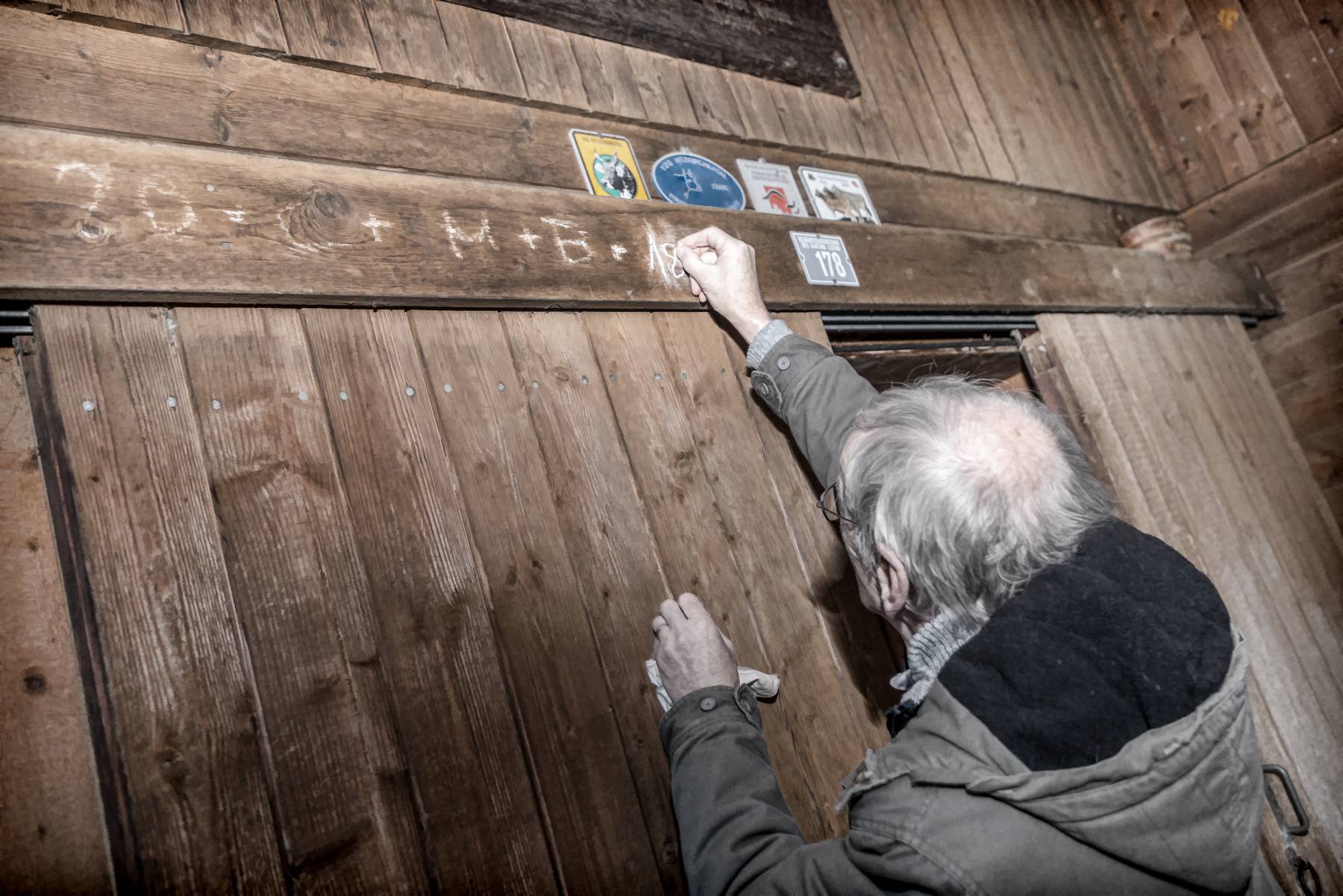 Beat Lustenberger schreibt mit geweihter Kreide die traditionelle Segensbitte C+M+B mit der jeweiligen Jahreszahl an die Haustüren oder die Türbalken