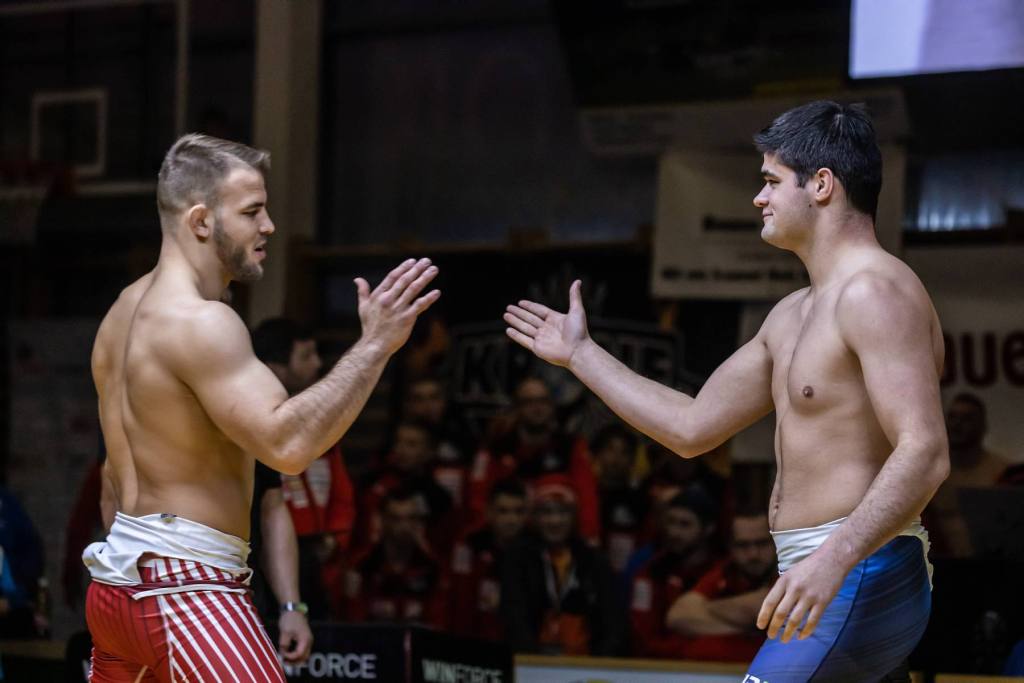 Teil 5 meiner Ringer-Premiere zeigt die bunte Show: öffentliches Wägen und gemeinsames Aufwärmen vor dem Wettkampf im Ring, die turnerische Pausenshow und geballte Emotionen nach dem knappen Sieg.