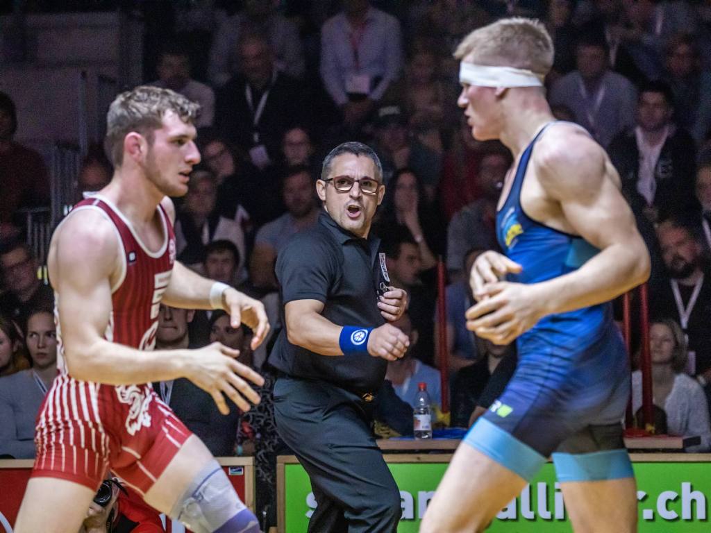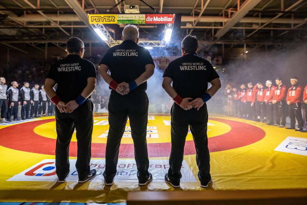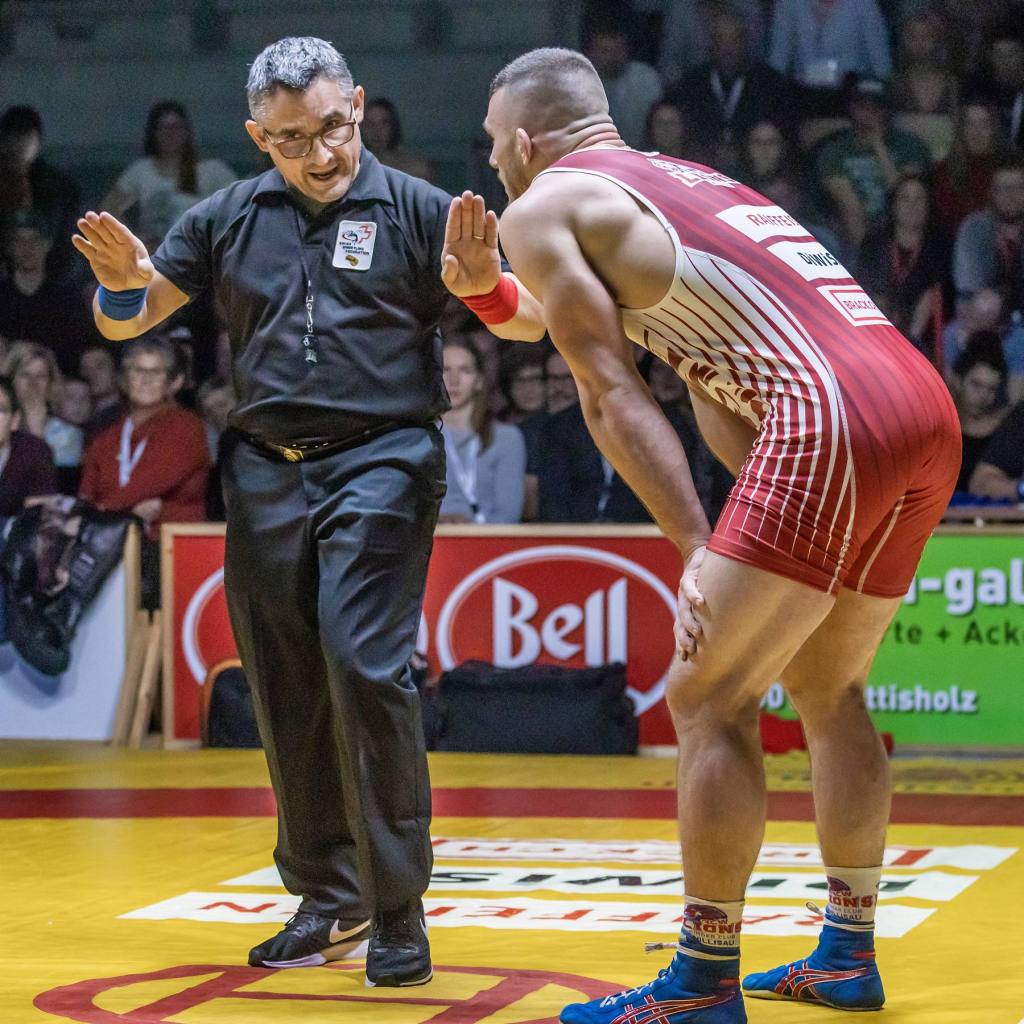 Teil 3 meiner Ringer-Premiere war ungeplant. Erst während des Wettkampfs fiel mit die grandiose Show der Schiedsrichter auf: mit vollem Körpereinsatz warfen sich die United World Wrestling Referees in den Kampf, umkreisten die Kontrahenten wie hungrige Löwen, krochen auf allen Vieren, um alle Kniffe der Bodenarbeit zu erkennen, schrien gegen die tobenden Zuschauermeute an und fuchtelten mit sämtlichen Gliedmassen! Kurz: eine bemerkenswerte Show!